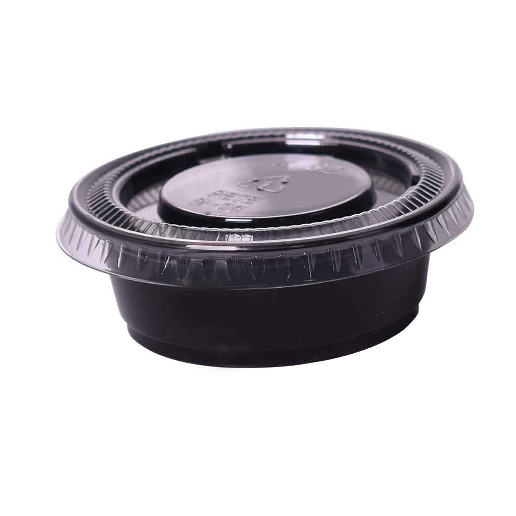 גביע פלסטיק לרוטב 1.5OZ שחור 2500 יח' – המיועד לרטבים, הגשה, ומשלוחים – מתאים למכסה מק"ט 1314
