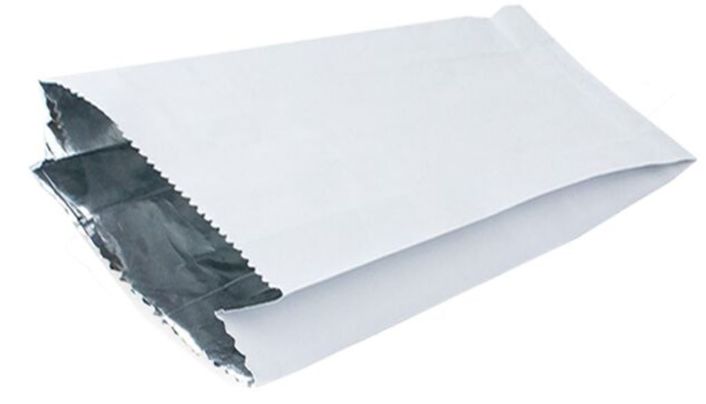 שקית נייר אלומיניום לציפס 3000 יח' – שקיות נייר בצבע לבן הפנים עם אלומיניום שומר על החום והטריות